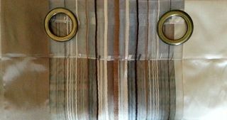 3 voilages rayés de différents tons de beige Finition haut : 8 oeillets en métal couleur bronze Dimensions: hauteur 2m60 largeur 1m40 Composition: 100% polyester 8€ pièce
