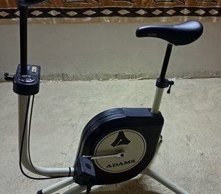 Vélo d'appartement de marque Adams en parfait état Très stable et solide, il fonctionne parfaitement Selle et guidon réglables en hauteur avec molettes Sur compteur Huret (Fr