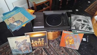 stéréo music centre phillips F1141 en état parfait de fonctionnement avec 2 enceintes + collection vintage 33tours environ 60 Jazz rock classique etchanson française vente uniqueme