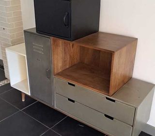 Meuble laquée marron. Meuble original des années 80. Merci. Cdt.