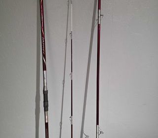 Cede canne de surf casting de marque Tubertini modele kima très rare avec scion tubulaire de couleur bordeaux puissance 200 250 g anneaux sic en fuji magnifique quasi neuve avec sa