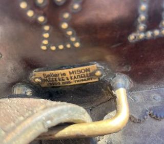 Armoire de couleur miel avec 2 portes (une penderie et l'autre avec étagères. ),3 tiroirs au centre avec une porte secrétaire et une vitrine. L'armoire est surélevé par 4 pieds en
