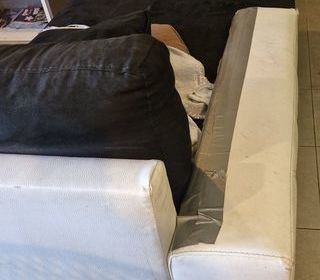 Canape d'angle gauche en l'état, manque les 2 tabourets