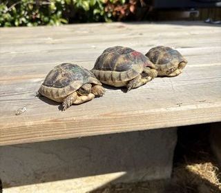 vend tortues de terre Marginata de 2 ans année 2024 1 mâles tache rouge sur la carapace et 2 femelle tache verte sur la carapace a venir chercher sur place prix de 100€ les 3