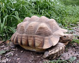 Tortue sillonnée (sulcata) mâle de 30 cm, pucé et enregistré à l'ifap. Vous devez impérativement faire une déclaration de détention et avoir des installations chauffées y compris l