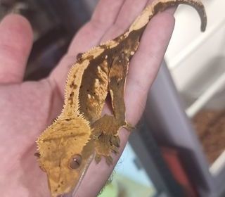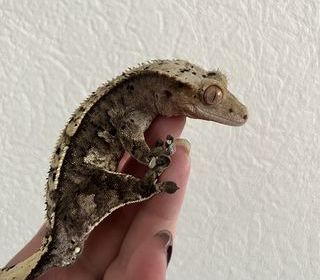 Bonjour, disponible gecko à crête (ciliatus) c'est un mâle. Très bon caractère se laisse manipuler sans problème, il est arlequin dalmatien porteur de lilly white.