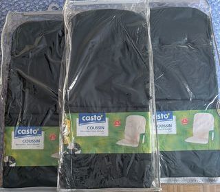 3 coussins monobloc haut dossier pour fauteuil de jardin Couleur verte Dimensions 44 cm x 95 cm, épaisseur 4 cm Tissu 100% Dralon Jamais utilisés. Vendus dans leur housse de r