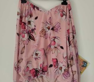 vend maillot rose avec motif de fleurs marron,blanche,violet ,il est élastique en haut et en bas ,vous pouvez le baisser pour laisser juste vos épaules nu sa fait effet très sy
