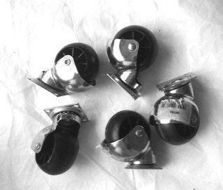 Lot de 5 roulettes à bille pivotante (matière PP noir et métal) Diamètre de la roue : 5 cm Hauteur totale : 6,4 cm Charge : 30 Kg Pour mobilier domestique et bureau (canapés, m