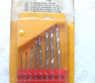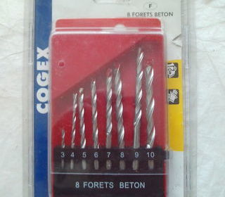Lot de 7 mèches (bois, métal, pierre), dimensions sur l'image