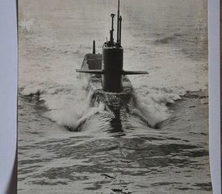 Vends belle photo des années 60 du sous-marin nucléaire Le Redoutable (rade de Cherbourg?)