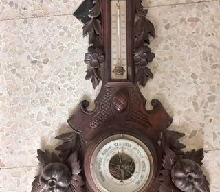 ANCIEN THERMOMETRE ET BAROMETRE EN BOIS SCUPTE HAUTEUR 0.70 M LARGEUR 0.33 M VITRE FENDUE PAS DE PAIEMENT EN LIGNE A PRENDRE SUR PLACE CULOZ