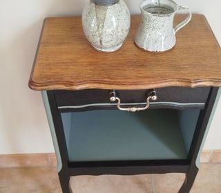 armoire 3 portes miroir lit en 140/190 en bois plaqué année 50 sans matelas ni sommier tapissier en bon état + table de nuit dessus marbre le tout en bon état