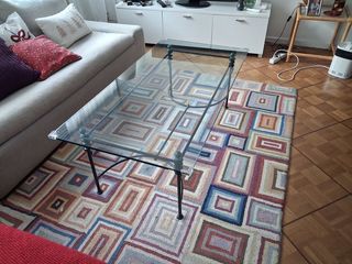 Table basse plateau en verre 2cm épaisseur Châssis en fer forgé travaille Dim 125x65 cm hauteur 40 cm Bon état convient pour tout type d' habitation