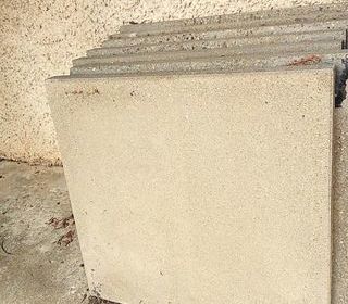 Taille 50x 50cm Épaisseur 4cm Lisses (pas de gravillons) Une dizaine de disponibles. Pour le poids je pense à 15Kg pièce, je n'ai pas vérifié, mais ne venez pas les chercher en
