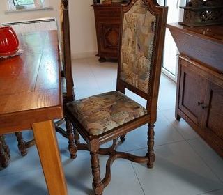 Chaise en noyer massif recouvertes tapisserie à motif multicolore