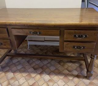 Bureau ne pente style louis XVI en noyer clair massif longueur 81 cm hauteur 100 cm profondeur 41 cm profondeur plateau ouvert 75 cm très bon état cuir neuf couleur fauve au