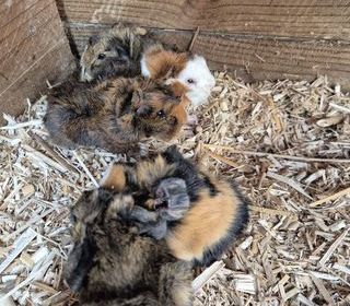 Bonjour nous allons avoir des bébés cochon dinde, le papa et la maman sont en photo. La maman est une cochon dinde shelty blanche et le papa un cochon dinde américain clested. Merc
