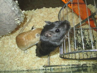 2 jeunes Gerbille Mâle, frères , agés de 4 mois, un noir et un beige, très gentils, partiront ensemble , 8€ les deux