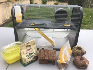 Tres belle cage pour hamster facile d'entretien avec tous ces accessoires. A retirer sur place