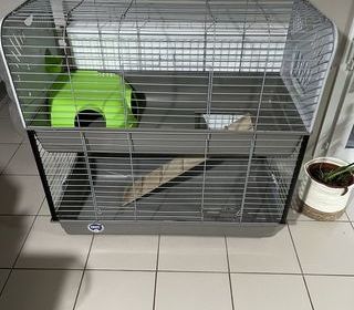 Bonjour Je revends cette cage acheté y a deux mois, utilisé un mois seulement car je voulais une cage plus grande pour mes cochons d inde. La cage est vendue vide sans accessoire