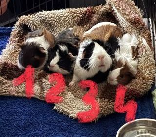 Bonjour cochon d'Inde 3 bébé née le 15 janvier plus la maman femelle sur la photo 1 bébé femelle 2 bébé mâle 3 maman femelle 4 bébé femelle