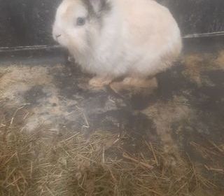 Lapin nain angora tete de lion castré habitué au chien et à vivre en liberté. Il.et adorable