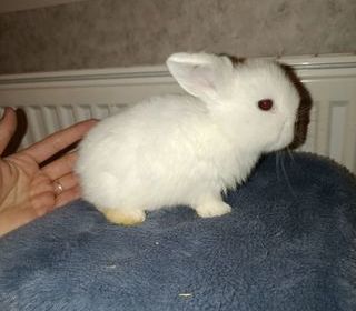 Bébés Minilop/bélier nain 2femelles et 2 mâles Vivent en maison depuis la naissance,manipulées tous les jours Sera traité contre la coccidiose, ainsi que vermifuge.