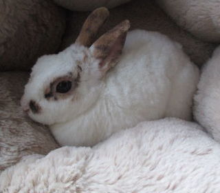 A Récupérer dans le département 18 jeune lapine Toy, (vrai Naine) , blanche avec tâche crème, poils REX, (velours) donc idéal pour les personnes faisant des allergies aux poils !