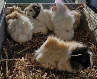 Jeunes cochons d'inde males et femelles. Ce sont des Animaux grégaires qui ont besoin d'un congénère pour être heureux. Habitués à vivre en extérieur si vous avez un enclos