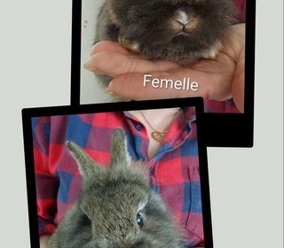 Bonjour à l'adoption 2 adorables bébés lapins nains femelles de 2 mois. Sevrées. Toutes douces poils angora. Manipulées et habituées aux enfants et chien. 25€ chacune. A prendre au