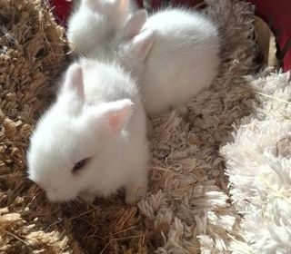 Bonjour à la réservation 3 bebe lapins nain de race angora tete de lion . Seront vendu à l'age de semaines quand il seront sevré .il son habitué a l'humain ainsi que au chiens e