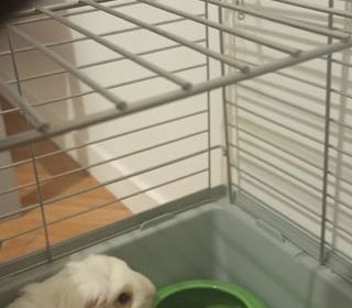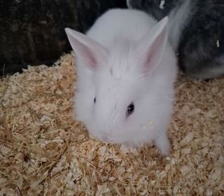 Lapins nains crinière tête de lion Sevrés Habitués à vivre en cage, sociable avec l'homme - 1 blanc aux yeux bleus (mâle) - 1 gris & blanc (mâle) né avec malformation esthéti