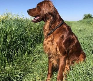 Setter Irlandais de 3 ans, confirmé au LOF ainsi que ses ancêtres. Bon chasseur, très bon caractère. Dysplasie des hanches A, test génomique effectué.