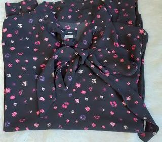 100% polyester - taille 36 - noué au col - manches longues fond noir avec petits motifs multicolores état neuf - 5€ + frais d'envoi éventuellement