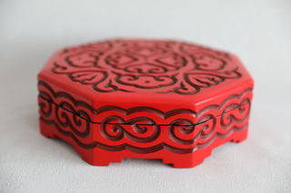 BOITE CHINOISE SIGNE LAQUE ROUGE Etiquette n°758 Dimension Diamètre 23.8 cm Hauteur 7.8 cm Prix 250 euros Etat de l'objet est visible sur les toute les phot