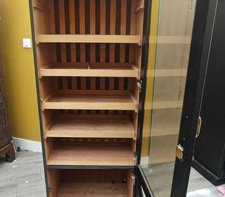 Je vends cette armoire a cigares en bois. - Type de produit : Armoire a cigares - Matériau : Bois - Couleur : Noir - Aménagement : 4 Etagères en bois de cèdre et 2 séparateur