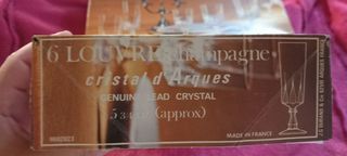 vends 6 ou 12 flutes à champagne cristal d'Arques modèle LOUVRE certaines avec étiquettes d'origine = neuves car jamais servies vendues avec leurs boites d'origine. PAS D'ENVO
