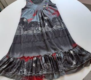 100% polyester - taille 36 - noué au col - manches longues fond noir avec petits motifs multicolores état neuf - 5€ + frais d'envoi éventuellement