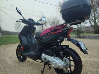APRILIA, 49 Cm3 , 2018, 10400 Km , 1300 €. Vends scooter avec top case. Contrôle technique Ok. Valable jusqu'au 23/02/2029. Il a quelques rayures sur la bulle et le top case (photo