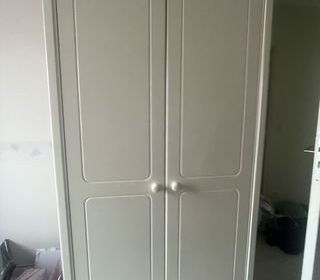 En bois plein, repeinte en blanc. Verre fantaisie légèrement jaune. Poussant droit . Vendue sans les gonds. 204 cm x 73 cm. A prendre sur place à Achères-la-Forêt , Seine et M
