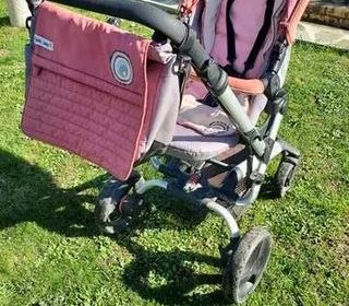 Poussette marque Rider équipée pour la pluie et le soleil. Elle est robuste et réversible