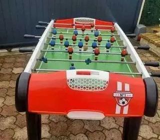Baby foot enfant de la marque Smoby , trois balles et démontable. Longueur: 1m30 Largeur: 90cm Hauteur 85 cm.