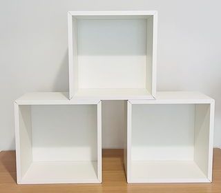 Je vends 3 étagères EKET d'IKEA (35×25×35 cm) en blanc. Elles sont en très bon état, avec un aspect propre, soigné et presque comme neuves. Elles présentent seulement deux petits