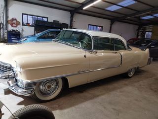 Cadillac coupé deville V8 1955 kit continental couleur pecos bege intérieur simili cuir beige intérieur tissu cadillac vitres et siège électrique boîte automatique Très belle voi