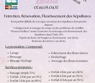 Bonjour, je vous partage le flyer d'une entreprise qui a réaliser l'entretien de la sépulture de mon beau père. Travail professionnel quelqu'un qui a du c?ur. Si ça peux vous servi