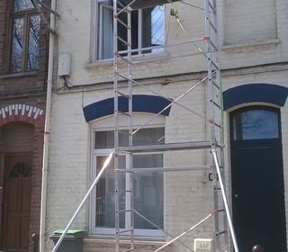 Loue échafaudage roulant aluminium 6.80ht de travail. Composition : Matière : Structure en aluminium. Plateau en bois antidérapant. Charge utile maxi : 150 kg. Hauteur