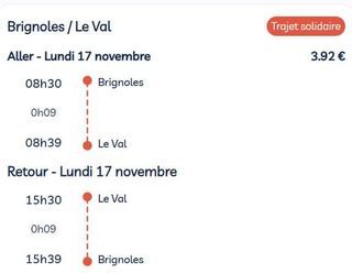 Bonjour, nous recherchons un covoiturage via Atchoum entre Brignoles (B&B HOTEL Route François Dufort, Brignoles ) et >> 358 Rioubert, Le Val. (et retour en apres midi), que nous