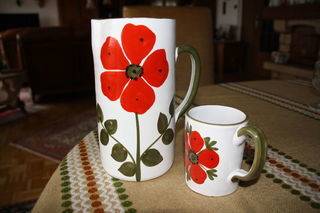 Service à jus ou sangria, composé d'une carafe et de six chopes.