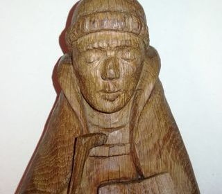 Statuette ancienne en bois massif représentant l'abbé St Méen Magnifique pièce unique taillée et sculptée dans un seul bloc Très bon état face et cotés Dimensions : hauteur t